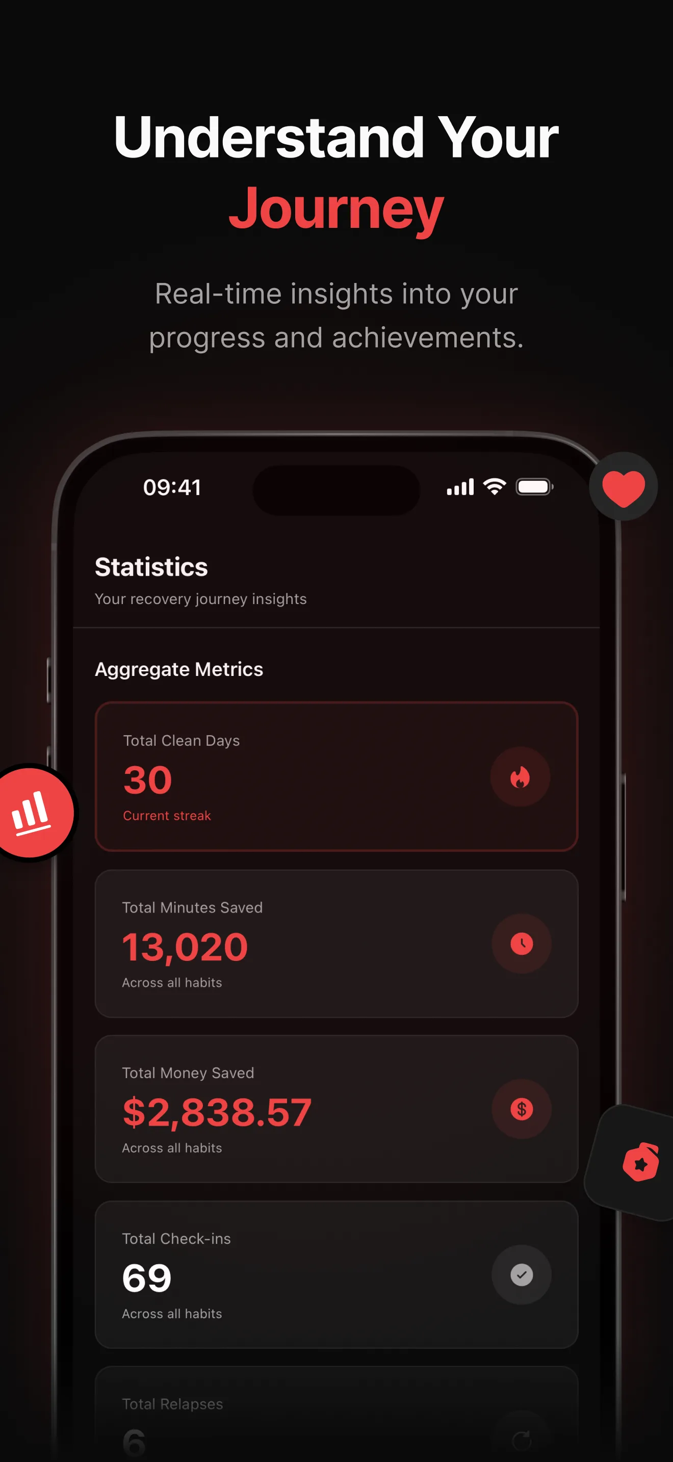 Recovery is personal. Track every day, get support in hard moments, and understand yourself better.